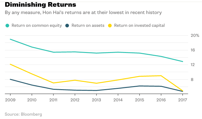 By any measure, Hon Hai’s returns are at their lowest in recent history