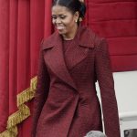 Even on her last day as first lady, Michelle Obama didn’t disappoint. The Obama wore a capped-sleeved burgandy print dress by Jason Wu paired with a coat fashioned by the same print. The former FLOTUS’ hair, usually some version of a bouncing bob, was pulled back tightly into a severe bun.