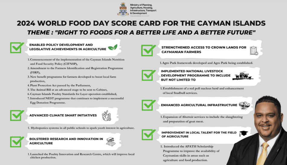 In observance of World Food Day 2024, we have created a Cayman Islands World Food Day Score Card, a testament to our hard work and numerous accomplishments. These successes will undoubtedly have lasting impacts, benefiting future generations.