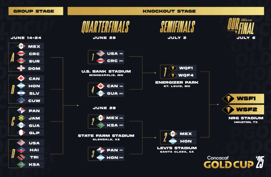 The 2025 Concacaf Gold Cup Semifinal matchups are determined based on the tournament’s Quarterfinal results and regulations (bracket available here and below). The schedule for the semifinals is as follows, with kick-off times listed in Eastern Time (Local Time).