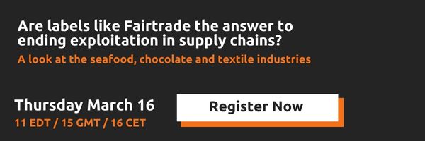 | Ever found yourself wondering if you can trust certification labels like Fairtrade, the Marine Stewardship Council or the Better Cotton Initiative to help you keep modern slavery out your shopping basket? Then this event is for you! Experts in cocoa, seafood and cotton will be discussing the role of certification schemes in tackling systemic human rights abuses and environmental damage in these sectors. Register today! |