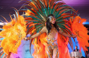 Yvonne Clarke, Miss Trinidad & Tobago 2017 debuts her National Costume on stage at Planet Hollywood Resort & Casino on November 18, 2017. The National Costume