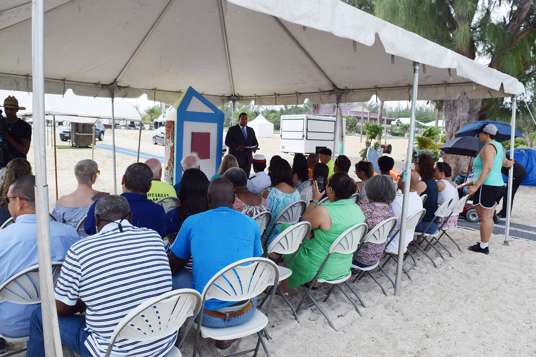 The Acting Minister of Human Resources, Immigration & Community Affairs, Hon. Austin Harris, gave remarks in the company of the Acting Governor, His Excellency Franz Manderson; Minister of Commerce, Investment and Planning, Hon. Joey Hew; Councillor Barbara Conolly; Mobi-Mat sponsors; Council members and friends.