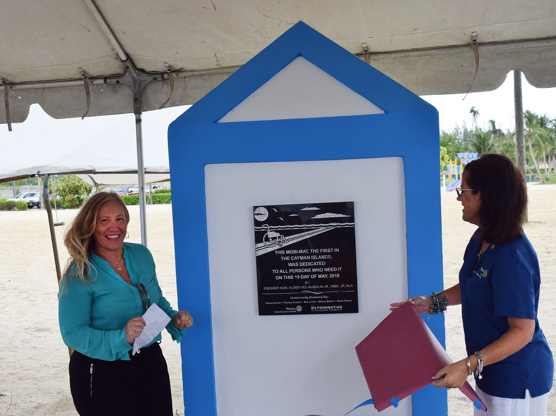 GRAND CAYMAN (GIS) – Rotary Central, in partnership with the National Council for Persons with Disabilities (the ” Council”), commemorated a landmark day in the Cayman Islands at an hour-long Mobi-Mat plaque unveiling and dedication ceremony on Seven Mile Public Beach recently.