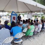 Alyssa Christian spoke on behalf of the MS Foundation, noting that the mat will also be used by persons with “invisible disabilities” such as Multiple Sclerosis. The Chairperson and Mrs. Bodden then unveiled the Mobi-Mat commemorative plaque; an etched granite tablet depicting an inclusive and accessible beach setting and marking the mat’s official date of siting. With engraving donated by Marvin Hurlston of George Town Crafts, the plaque was set in an existing, freshly painted mounting by the Public Works Department.