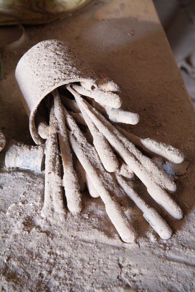 Pipettes coated in Ash, Montserrat Technical College, Plymouth.Source Photo Volcanica