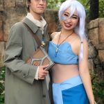 Cosplayer Moe Dreaming reimagined the leading characters Milo and Kida almost exactly, and you can do the same with the help of some simple sewing skills. Milo’s outfit can be recreated with any thrifted trench coat and white turtleneck, but to match Kida’s look, you’ll need to sew blue fabric into a crop top and then use the rest to make a skirt.
