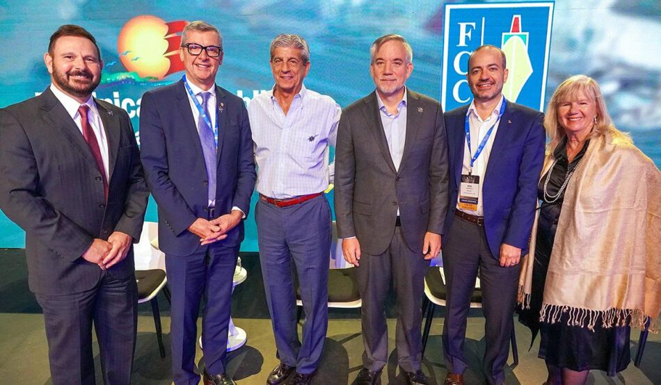 Throwback to an unforgettable moment at Florida-Caribbean Cruise Association (FCCA) Cruise Conference and Trade Show in Santo Domingo, Dominican Republic in 2022. Pictured left to right: FCCA President Adam Ceserano; Michael Bayley, President & CEO of Royal Caribbean International; Rick Sasso, Chairman of MSC Cruises USA; Howard Sherman, former CEO, Oceania Cruises; Gus Antorcha, now President of Princess Cruises; and FCCA CEO Michele Paige.