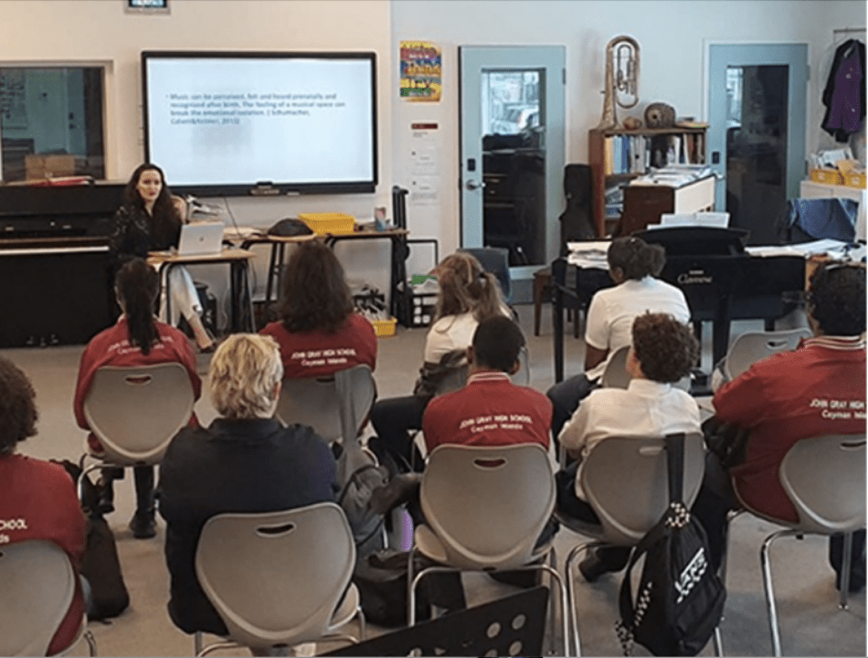 During her week in Cayman, Postu gave workshops to various groups, including the staff at the Lighthouse School, the staff of Spark! School of Performing Arts, staff at John Gray High School, a group of Year 10 music students at John Gray High School and an online session with Cayman-based psychologists.