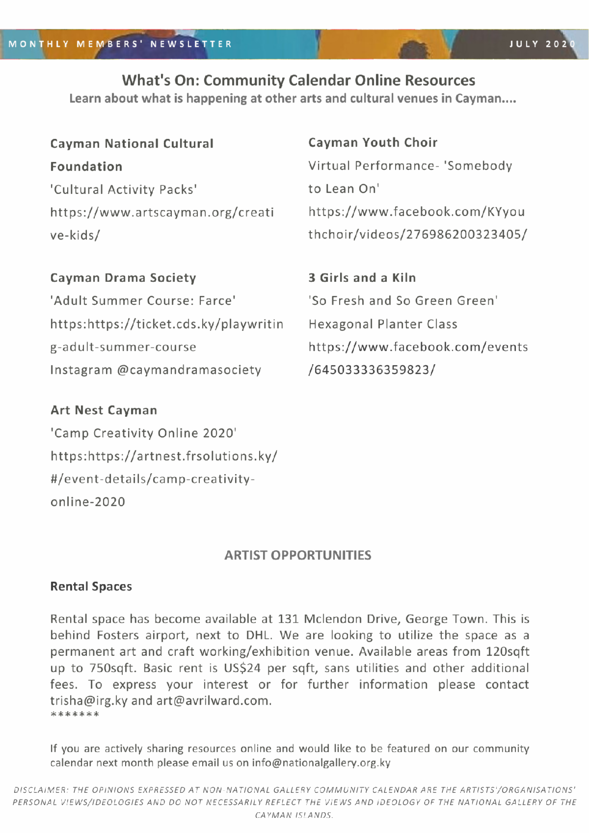 National Gallery of the Cayman Islands, P.O. Box 10197, Grand Cayman, KY1-1002 Cayman Islands