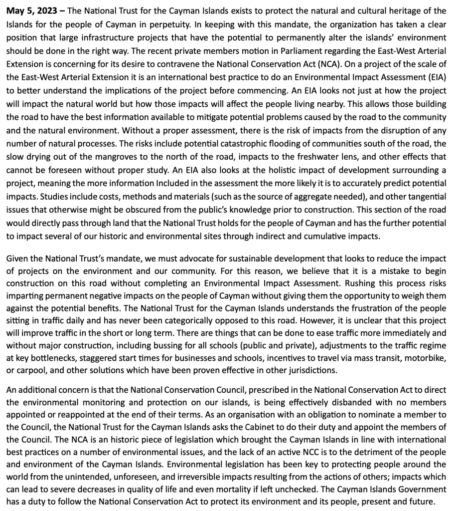 HomepageCaribbean NewsNational Trust for the Cayman Islands regarding EW Arterial Private Members Motion National Trust for the Cayman Islands regarding EW Arterial Private Members Motion Posted on May 9, 2023 LEAVE A RESPONSE Cancel replyYour email address will not be published. Required fields are marked *Comment * Name * Email * Website Post navigation Previous PostHappy Birthday Automobili Lamborghini! Next PostCayman Finance launches LEAD Program to educate High School students on Financial Services Industry