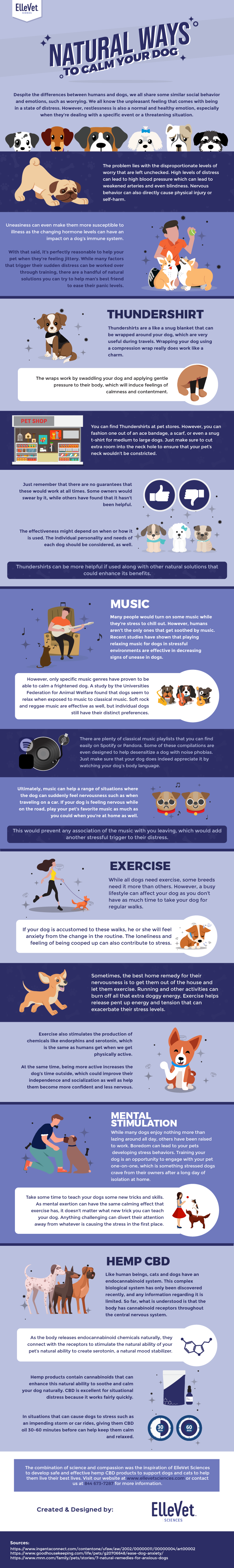 Restlessness can affect the dogs’ immune system, making them more likely to get sick. To keep their pets from getting restless, dog owners can keep their pets from becoming nervous by using Thundershirts to swaddle their pets, using relaxing classical music to fight the stress, giving them sufficient exercise to keep them from being cooped up, stimulating their minds by teaching them new tricks, and using hemp CBD to calm the dogs when they’re in stressful situations.