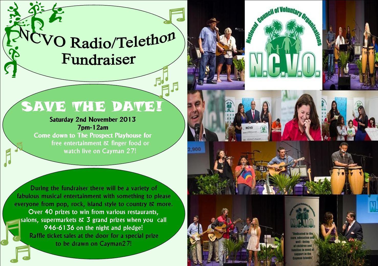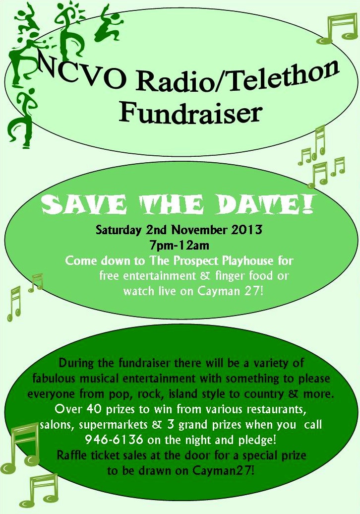 The NCVO will be holding its 34th Annual Radio/Telethon on Saturday 2nd November 2013 from 7:00 p.m. onwards at the Prospect Playhouse. This popular event will be aired live on Cayman 27 and Radio Cayman.