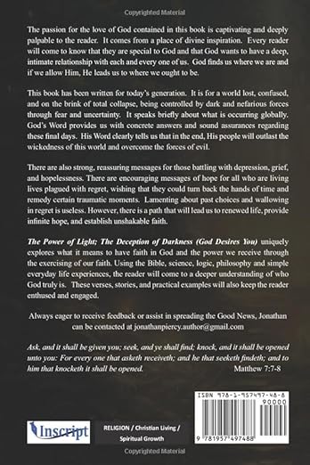 New Book Release; “The Power of Light; The Deception of Darkness (God Desires You)” By Jonathan Piercy