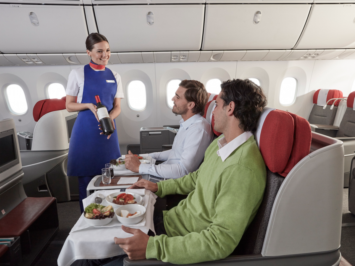 Premium cabin passengers are also treated to gourmet meals featuring natural ingredients sourced from South America paired with wines selected by master sommelier Hector Vergara.