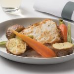 Like this pan seared Amazonian pirarucú fish with Caipirinha sauce, roasted baby potatoes, and baby carrots