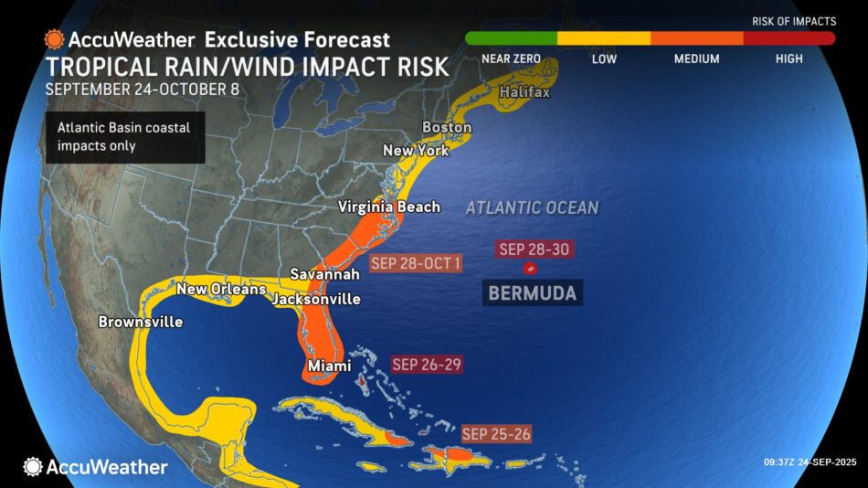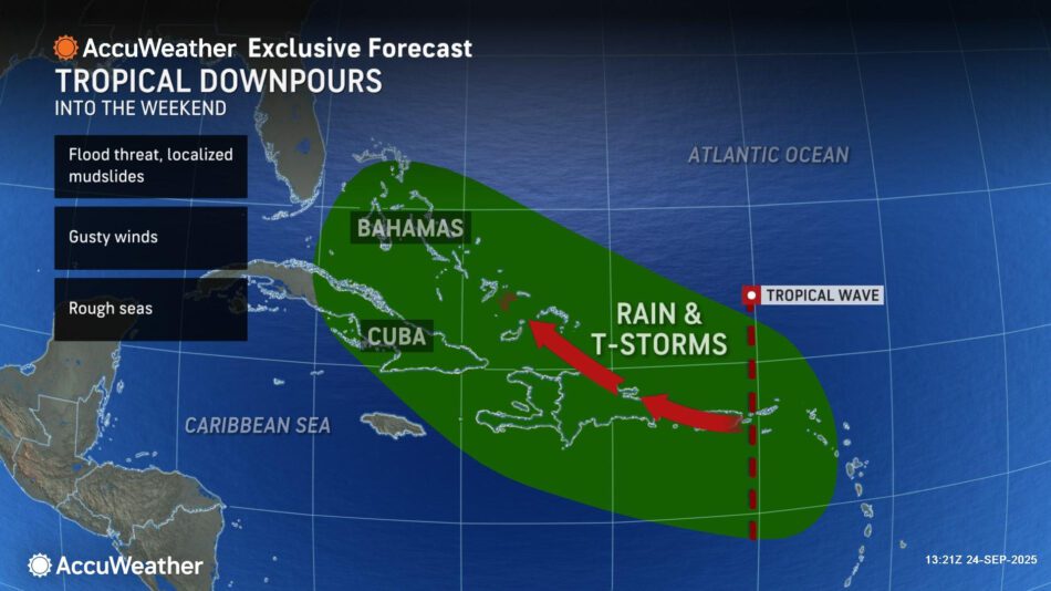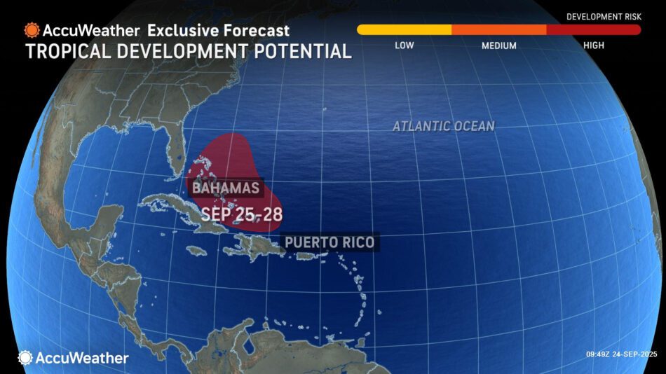AccuWeather® Global Weather Center – Sept. 24, 2025 – AccuWeather® hurricane experts are closely monitoring a new tropical rainstorm that formed east of the Lesser Antilles, and another tropical wave moving toward the Bahamas that has a high risk of tropical development potential by the end of this weekend.