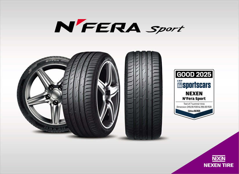 NEXEN TIRE, a global leader in tire manufacturing, is proud to announce that in the latest summer tire test conducted by AUTO BILD sportscars (Issue 06/2025), the Nexen N’Fera Sport impressed with a “Good” overall rating. Competing in the demanding UHP (Ultra High Performance) segment, the N’Fera Sport particularly stood out with top-level results in wet handling and aquaplaning. It ranked second overall in wet handling, delivering precise steering response and confident grip even in challenging conditions. In aquaplaning tests, it led the entire field in water displacement, offering a clear safety advantage in heavy rain and standing water. These results confirm the N’Fera Sport as a high-performing UHP tire that combines control, responsiveness, and safety for confident everyday and dynamic driving alike.
