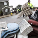 Debris left by a massive storm that caused flooding sits on Sea Street in Quincy on March 5. (Keith Bedford/Globe Staff)