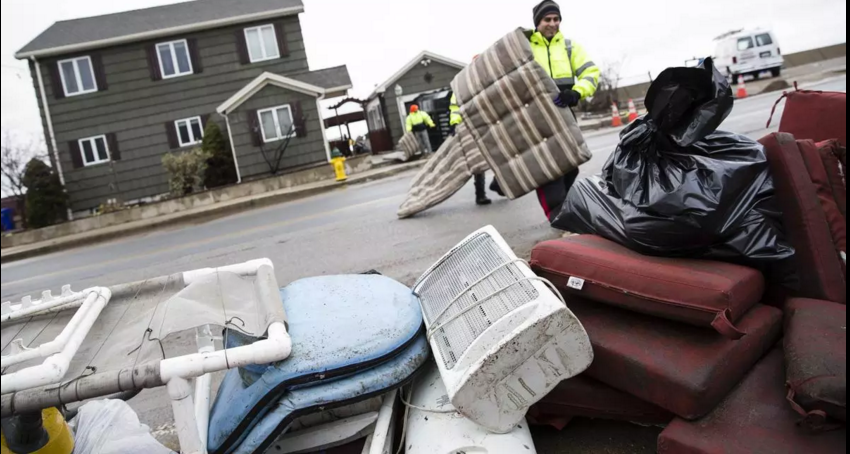 Debris left by a massive storm that caused flooding sits on Sea Street in Quincy on March 5. (Keith Bedford/Globe Staff)