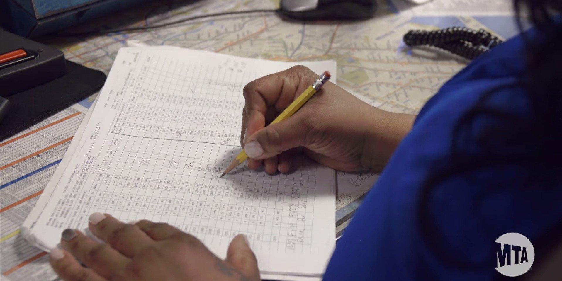 An MTA employee tracks trains by hand.