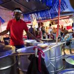 J’ouvert’s costumes, called “ole mas,” are different but just as wild. Some people dress in rags and don helmets with giant horns painted a thick-as-molasses black. Others cover themselves in red paint or black oil. The costumes are a nod to the original celebrations that began in Trinidad in the mid-1800s when slaves were emancipated.