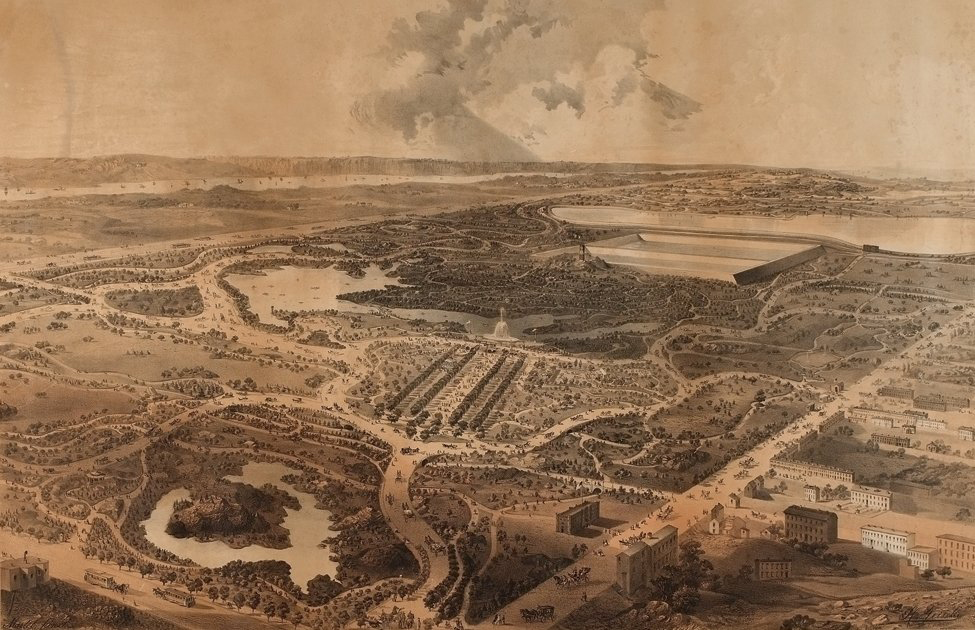 “The time will come when New York will be built up, when all the grading and filling will be done, and when the picturesquely varied, rocky formations of the Island will have been converted into formations for rows of monotonous straight streets, and piles of erect buildings,” Frederick Law Olmsted, an NYC landscape architect, wrote at the time.