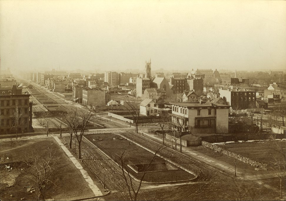 This photo was taken in 1882 from the roof of a mansion that belonged to George Ehret, a successful brewer and one of the first wealthy New Yorkers to move to Prospect Hill (now Carnegie Hill).