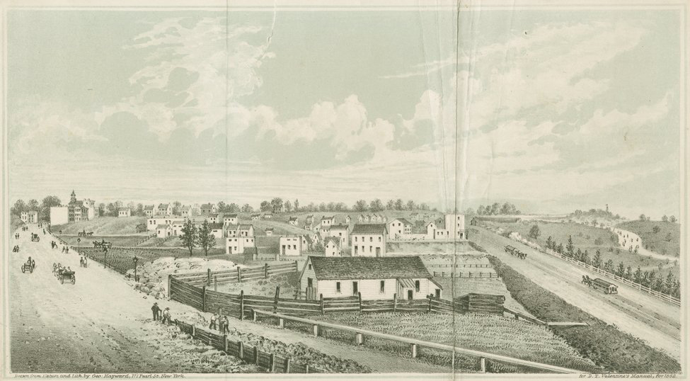 The junction of Broadway and Eighth avenues in 1861. Lithograph by George Hayward for D.T. Valentine’s Manual, 1862.The Museum of the City of New York