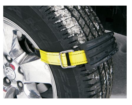 For this problem a simple, low-tech device exists: The Trac-Grabber Traction Device. It’s portable, relatively quick and easy to install and looks quite effective: