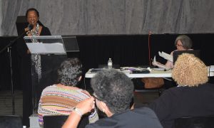 The Council’s Chairperson and district representative [Lucille Seymour] gave a short presentation and introduced fellow panelists: Deputy Chairperson Alice Mae Coe and Ministry of Community Affairs Policy Officer (Gender Affairs) Karlene Bramwell.