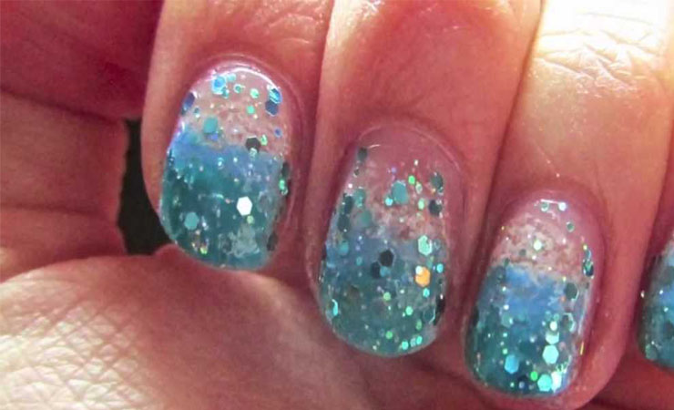 This textured mermaid manicure is one of the tremendously unique nail designs that ensure a very glamorous and classy look. Apply two coats of opulent teal glittery nail polish and let it dry. Now using a striping brush, make a pattern showing off the base nail color. Now use beads to make the look effective and paint a mermaid on your ring finger for making a fashion statement.