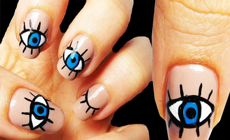 Your creativity and imagination can make your nails look superb and extraordinary. All you need is to take a theme from a source and combine it with your nail art. For example, you can paint eye on your nails with a monochromatic visual background. This superb idea is another cool option for you to décor your nail with stunning look.