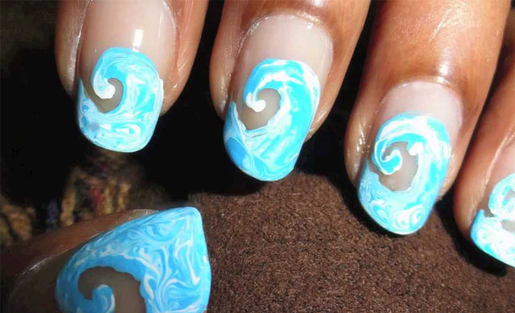 Take a unique theme i.e. marine for your nail art designing and create a super duper imaginative idea on your nails. With white backdrop, the lighter and darker shades of blue create a very impressive look.