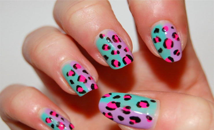 Let it make simple by having this cool nail ensemble. Apply two coats of any nude color nail lacquer and let it dry. Draw leopard motifs at one side of your nail with black nail polish. Seal the look with a top coat for a lasting impact.