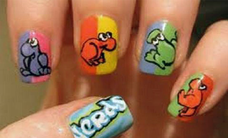 In remembrance of your childhood, get your nails painted with all time favorite Disney’s cartoon characters. Who can forget lady and the tramp! Perhaps it is the most favorite cartoon character; girls want to paint their nails with. Apply two coats of maroon nail polish; now apply one stroke of glittery golden nail polish and let it dried up. Draw the details of these characters with acrylic paints on three fingers leaving the rest two empty. Once you get your nails painted, you envy yourself for your talent and creativity.
