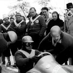 It looks like the racers were wearing leather football helmets with some primitive facemasks. Also note the steering wheel.