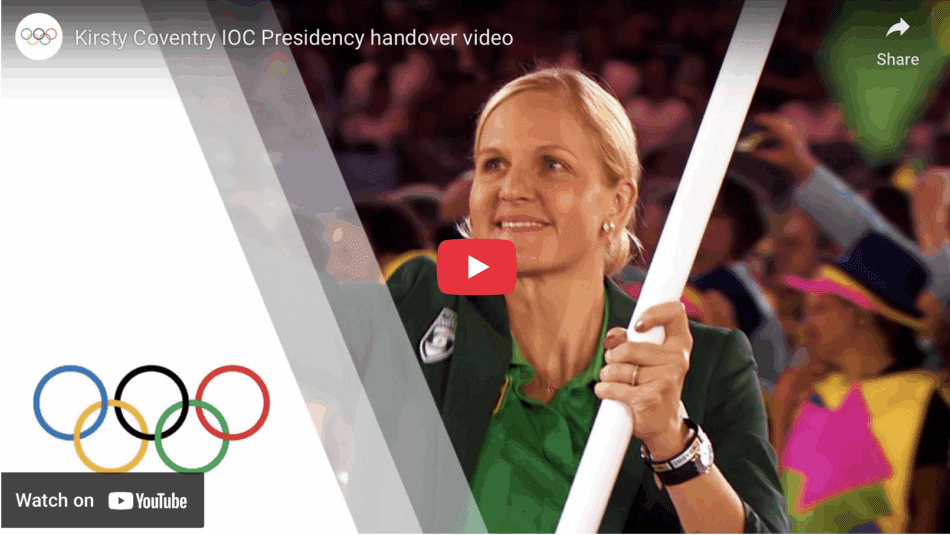 In this spirit of gratitude, confidence and joy, I hand over the keys of Olympic House to Mrs Kirsty Coventry, the 10th President of the International Olympic Committee.”