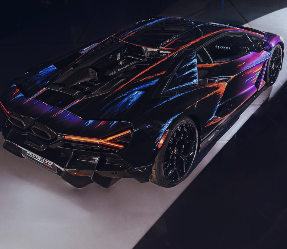 “We wanted to create something purely artistic using brushes and a combination of colors, as if the Revuelto was a canvas. That is what fueled our inspiration for this special livery,” said Mitja Borkert, Automobili Lamborghini’s Design Director. “With the dynamic hand-painted exterior we really emphasize the aerodynamics and speed of the car.”