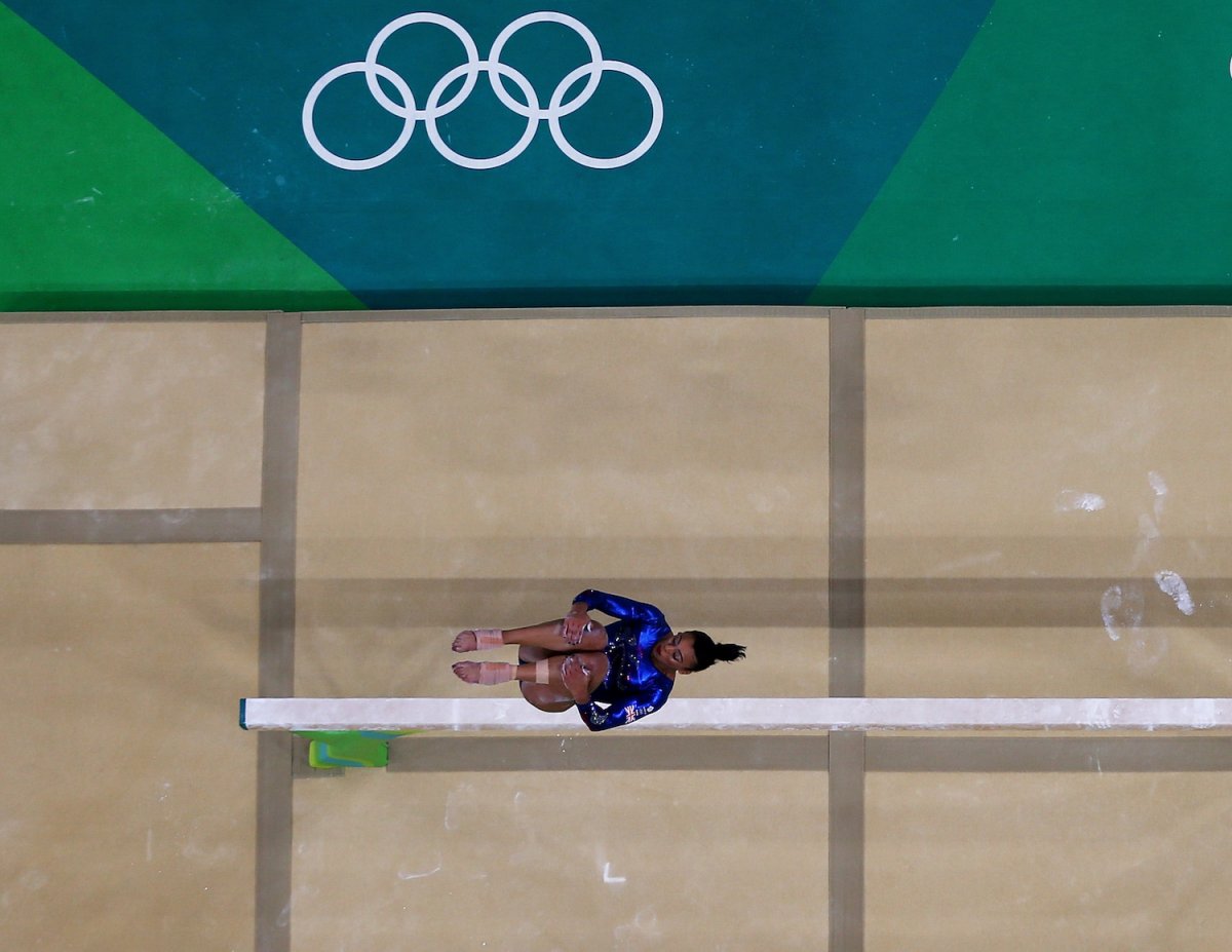 Great Britain’s Elissa Downie gives you a sense of how narrow the balance beam is…