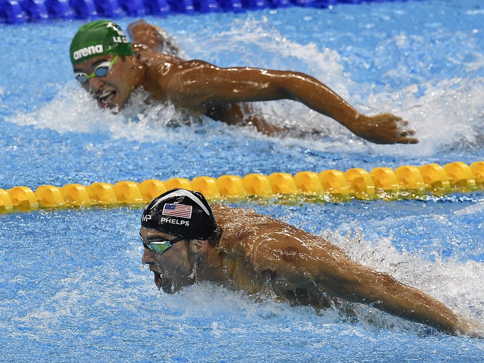 Michael Phelps’ opponent realizes he’s been beaten.