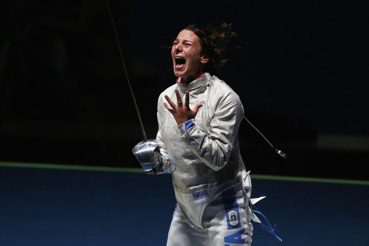 An anguished Azza Besbes of Tunisia after a fencing loss.
