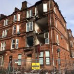 In Glasgow, part of a derelict block of flats already earmarked for partial demolition collapsed overnight, and a Scouts hall roof was blown off in Dumfries and Galloway as the region took the brunt of winds up to 77mph (123km/h).