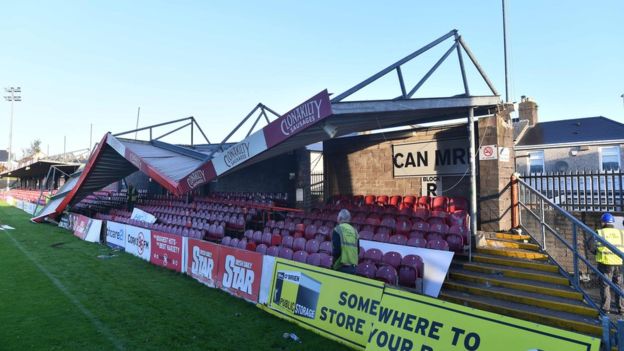 A stadium roof in Cork was damaged in the stormImage copyright AFP/GETTY IMAGES