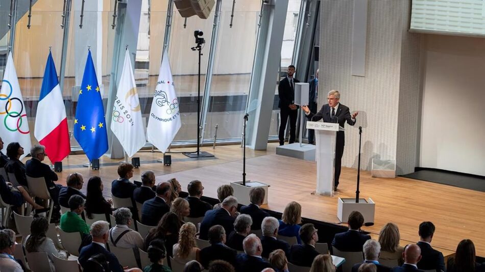 22 July 2024 – At a time when the world order is deeply troubling, the Olympic values of solidarity, equality and human dignity for all have never been more important. This was the powerful message delivered by IOC President Thomas Bach, speaking at the Opening Ceremony of the 142nd IOC Session in Paris on the eve of the Olympic Games Paris 2024, at the Louis Vuitton Foundation, in the presence of French President Emmanuel Macron. The iconic building of the Foundation is situated in the very park where Pierre de Coubertin hosted the closing evening of the historic congress that founded the IOC in 1894.