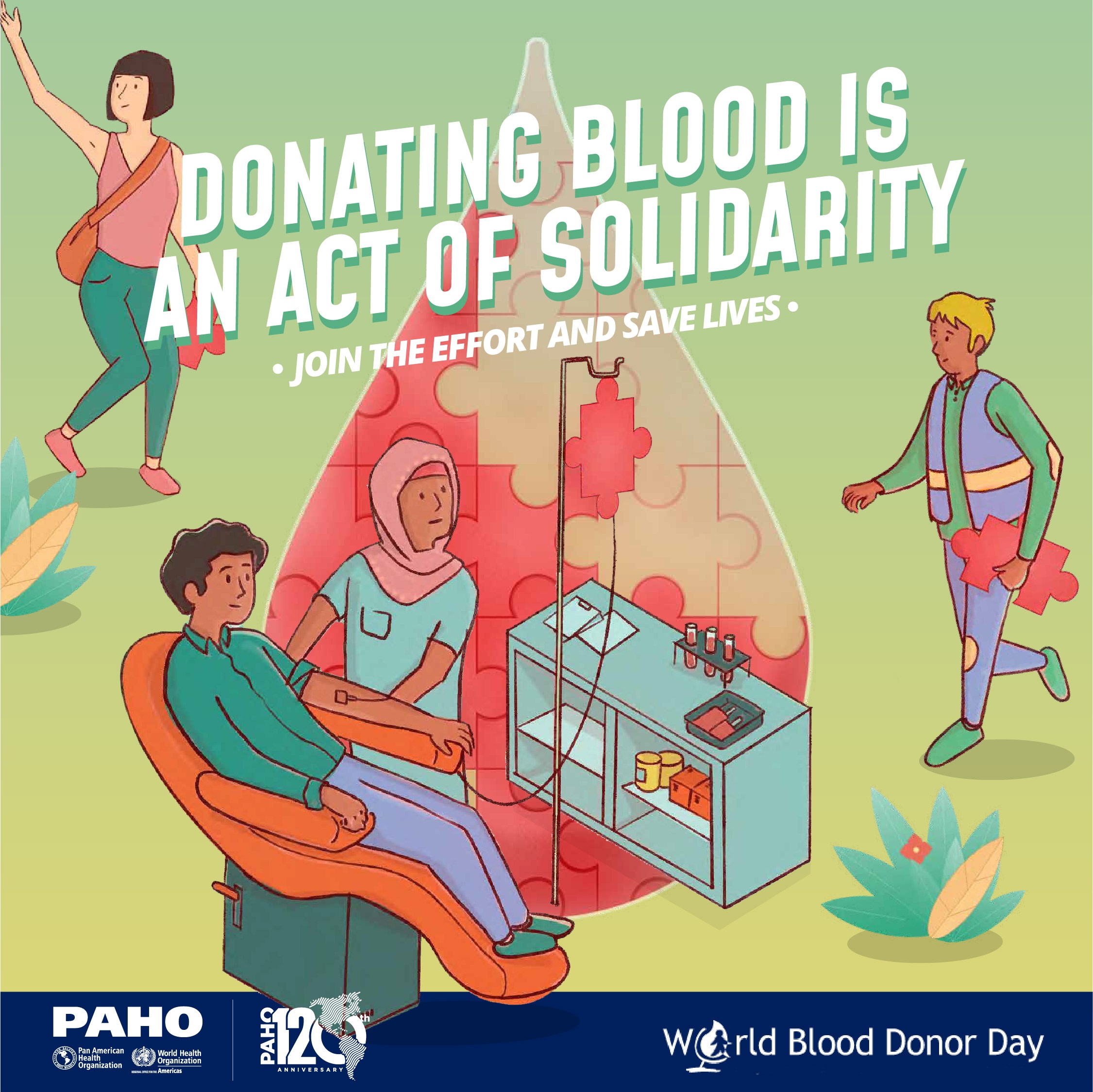 World Blood Donor Day, established by WHO in 2005, is celebrated every 14 June to highlight the importance of the availability of safe and sufficient blood and blood products for all, and to thank voluntary, repetitive and unpaid donors for their act of solidarity. This year’s theme is “Donating blood is an act of solidarity. Join the effort and save lives.”