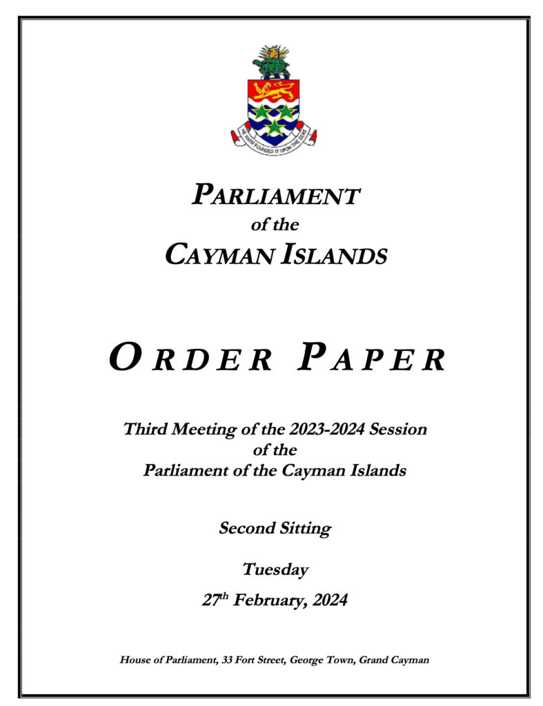 (12) Civil Proceedings (Closed Material Procedures) Bill, 2023Order Paper – Third Meeting of the 2023-2024 Session – Parliament of the Cayman Islands – 27th February, 2024