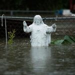 A statue reaches above Florence’s floodwaters in North Carolina.