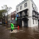 Sam Parks walks through flooded Water Street as Hurricane Florence comes ashore in Wilmington, North Carolina
