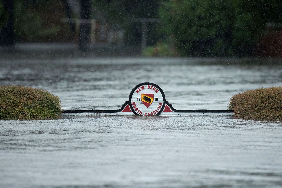 A statue reaches above Florence’s floodwaters in North Carolina.